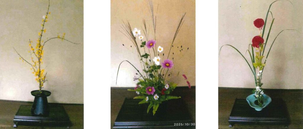 池坊さくら会は名前の通り〝池坊〟の流派を主に〝自由花〟〝生花〟〝立花〟を行っております。